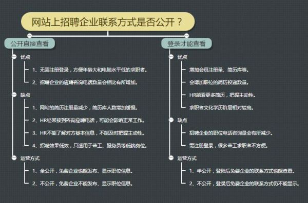 這是從開放的方式來(lái)闡述對(duì)于地方人才網(wǎng)站定位服務(wù)當(dāng)?shù)厝w人群求職招聘的運(yùn)營(yíng)方法來(lái)總結(jié)網(wǎng)站上是否需要公開招聘企業(yè)的聯(lián)系方式。